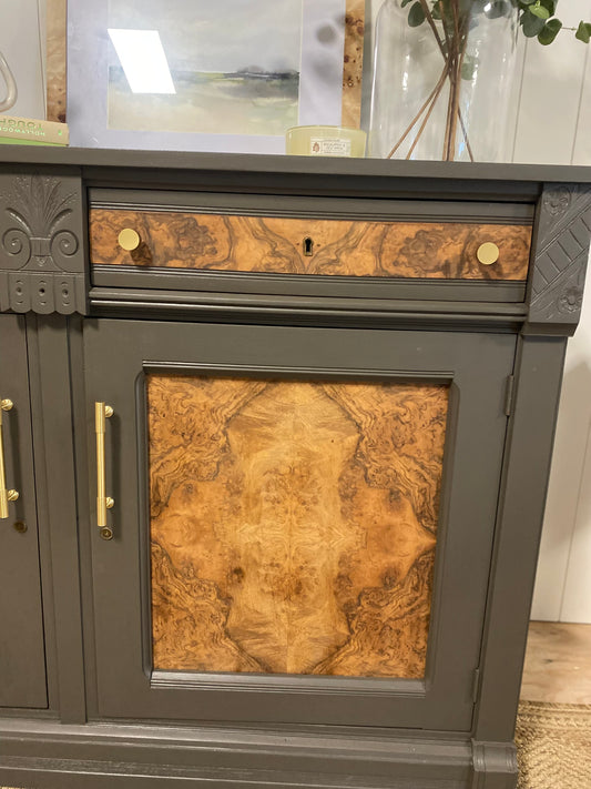 One of a Kind Refinished Vintage Burlwood Sideboard 52"